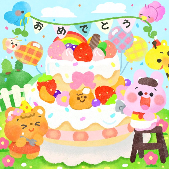 ホホ~~~~!!🥳🎂✨ 今日はボクの誕生日パーティーをしてくれたんだ~! みんなもお祝いしてくれるかな~????😊 #ふくふく生誕祭 #おめでとう #誕生日 #HappyBirthday #バースデーケーキ #プレゼントよろしく #イラスト