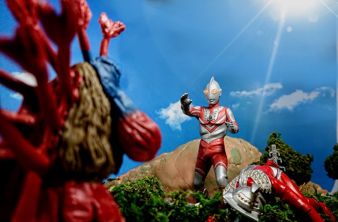 #夜のフィギュア撮影会 6/16「光線」 #おもちゃ撮影会 6/16「おもちゃフリー」 #楽しく玩具撮影会 6/16「ロマン」 てれぽーと劇場 昭和ロマンの為せる荒業 #お笑いフィギュア劇場 #超動 #shodo #ウルトラマンタロウ #バードン #ウルトラマン