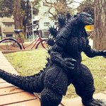 #夜のフィギュア撮影会 お題『問題』 問題発生!?メルトダウン寸前のバーニングゴジラが2体に増えた!😆 (←バーニングゴジラ ゴジラ・フェス 番外編 新宿総進撃ver. にLEDライトを仕込んでみた) #ゴジラ #Godzilla #バーニングゴジラ #ムービーモンスターシリーズ #ムビモン #ソフビ #デスゴジ