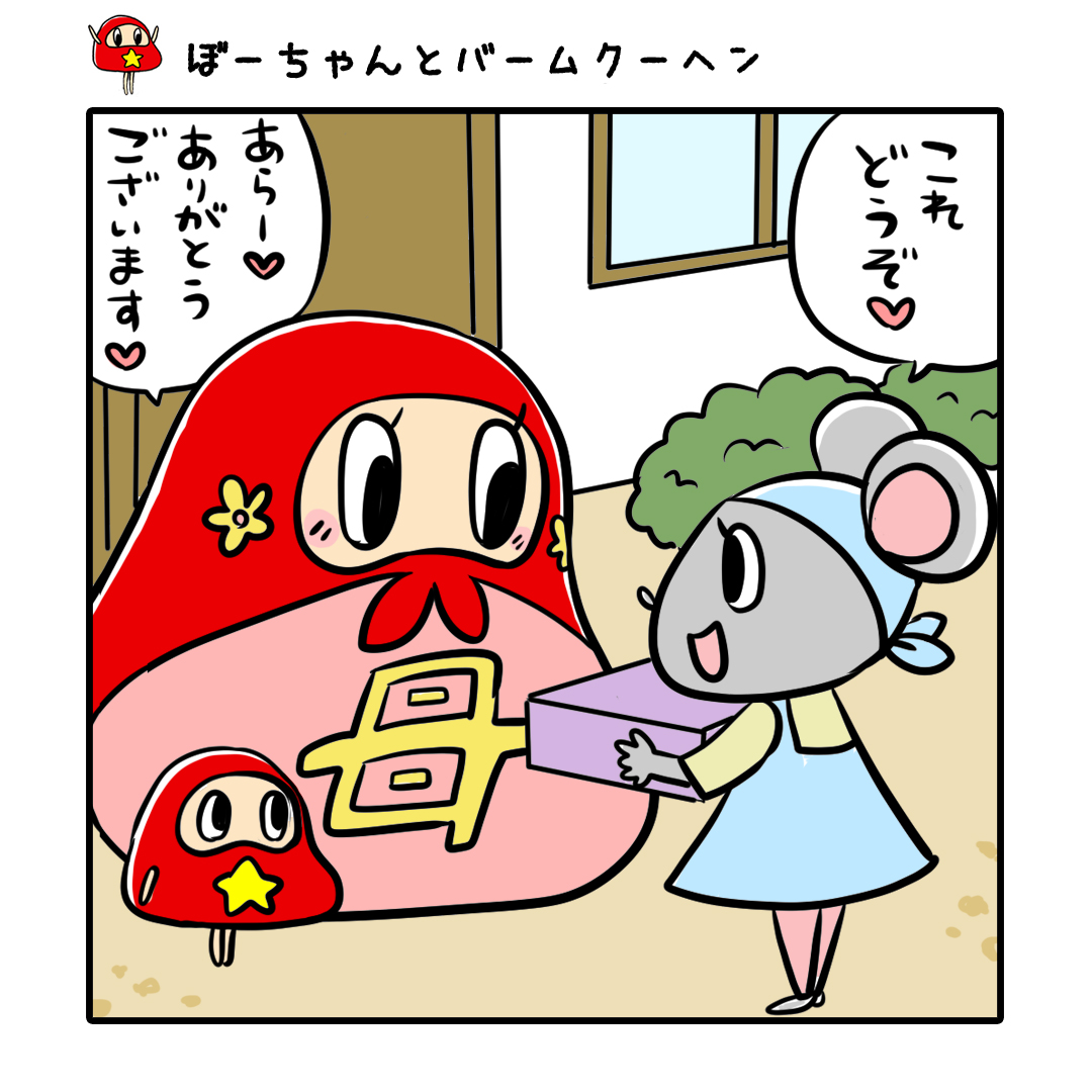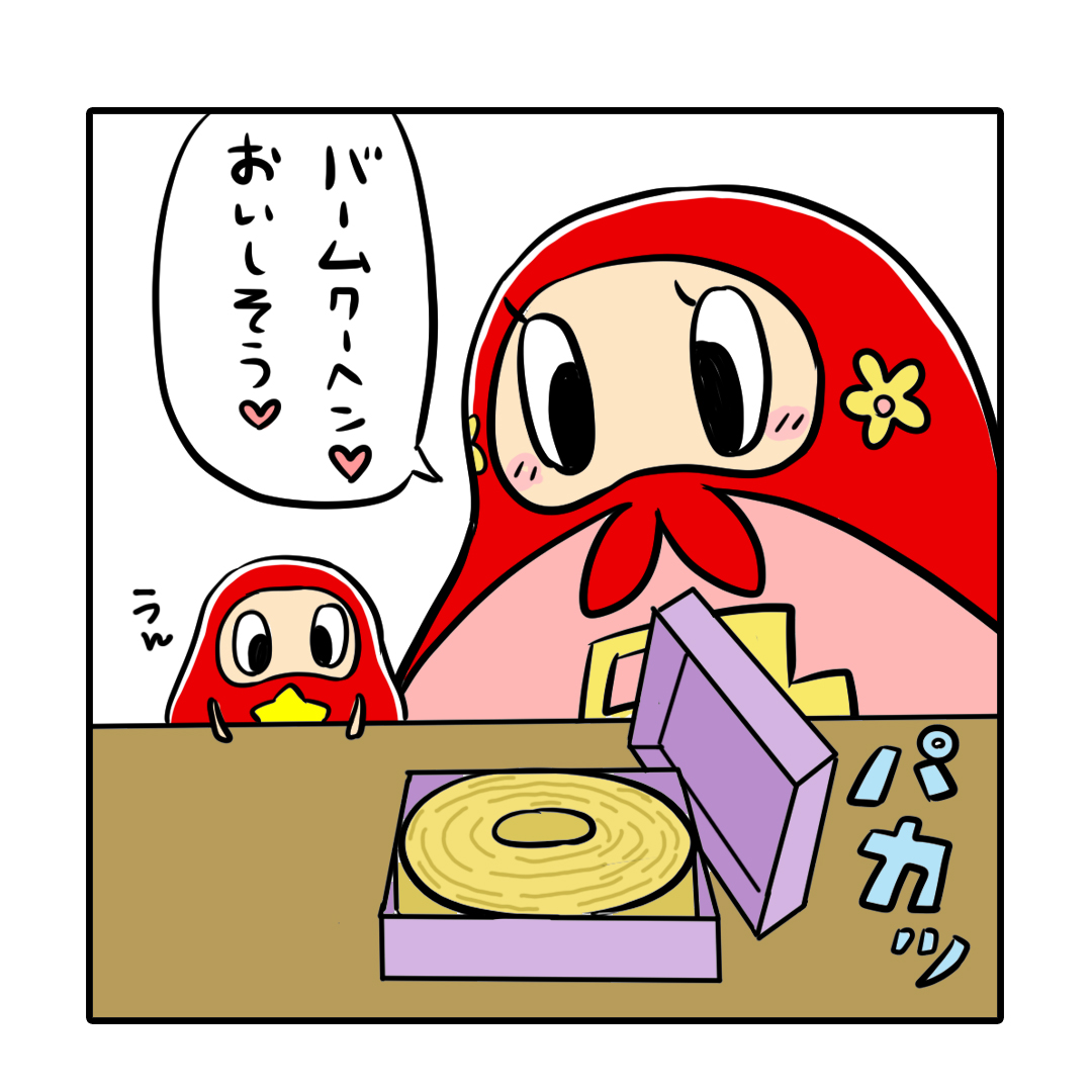 『ぼーちゃんとバームクーヘン✨✨』 いただき物、食べ物だといいですね。 #バームクーヘン #sweets #スイーツ #だるまのぼーちゃん #イラスト #ゆるいイラスト #ゆるかわイラスト #お絵かき #絵描きさんと繋がりたい #一日一絵 #4コマ漫画 #漫画 #漫画が読めるハッシュタグ