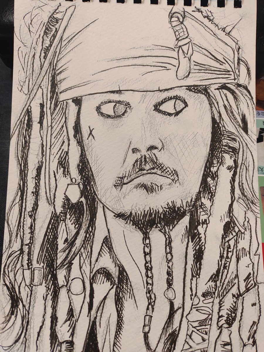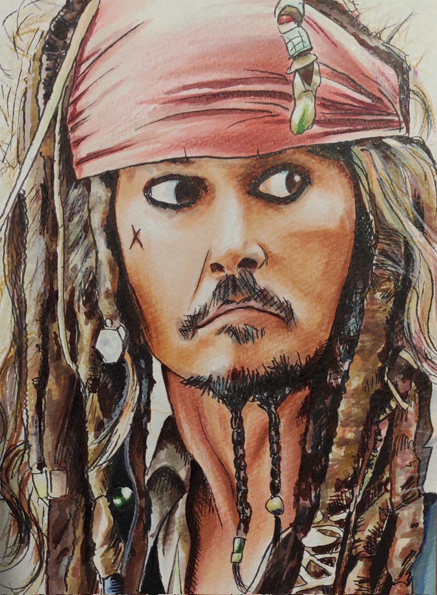 何年前に描いたかも忘れたジャックスパロウ😅😅😅 初期のパイレーツ・オブ・カリビアンっていつやった((´∀`*))ヶラヶラ #ジョニー・デップ #illustration #パイレーツ・オブ・カリビアン #ジャックスパロウ #スケッチ #アナログイラスト #絵描きさんと繋がりたい