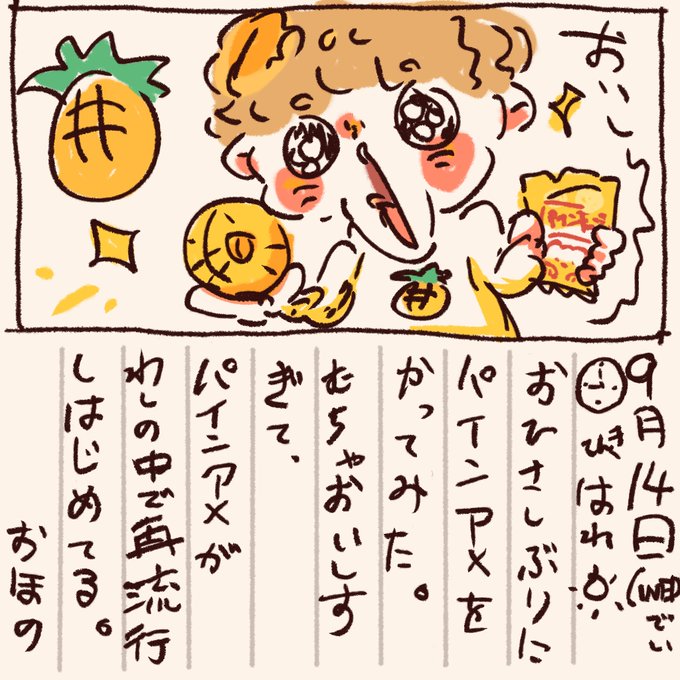 🐱🍍🐱 昨日のことですが… 817 #パイナップルの日 🍍 私の頭にすぐ浮かんだのは、本物のパイナップルではなくパインアメでした🥰 昭和26年から発売されているそうですね😳 ロングセラー‼️すごい‼️😆✨✨ #イラスト #illustration #絵本 #猫好きさんと繋がりたい #ねこ #パインアメ