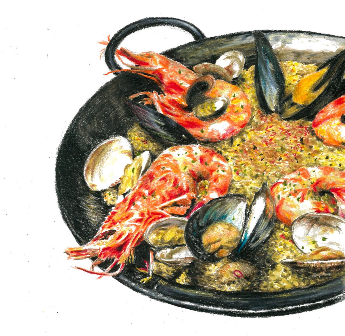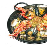 スペイン料理を食べに行った🇪🇸 #スペイン料理 #パエリア #1日1絵 #水彩画 #手帳 #トラベラーズノート #猫 #スケッチジャーナル #マンスリージャーナル #絵 #イラスト #絵描きさんと繫がりたい #イラスト好きな人と繋がりたい