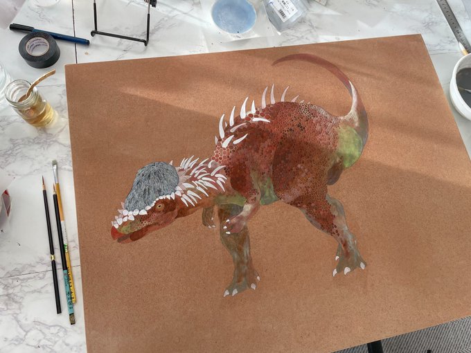 実は最近ちょこっと恐竜さんに惹かれています🦕 画像は現在制作中の #パキケファロサウルス のご婦人。なにやらホヤちゃんと意気投合しているご様子。 #イラスト #ウーパールーパー #鹿児島 #シェアカゴ #絵描きさんと繋がりたい #kagoshima_art #デジタルイラスト #clipstudiopaint #ipadpro #恐竜