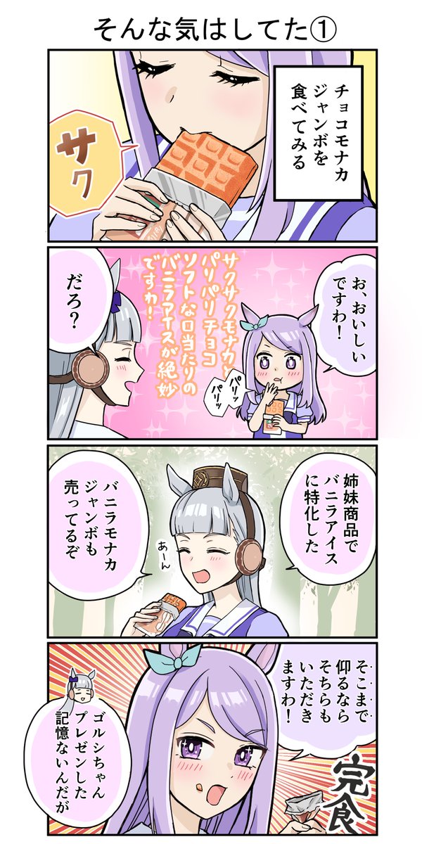あんこのもなかしか知らないと言うマックイーンにチョコモナカジャンボをあげるゴールドシップ。 #ウマ娘 #ウマ娘プリティーダービー #ゴールドシップ #メジロマックイーン #パクパクですわ