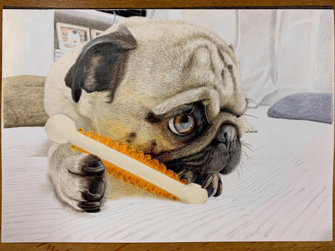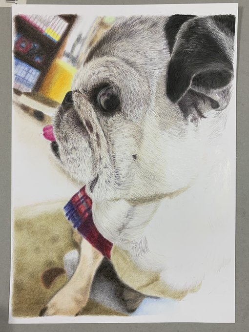 お顔がだいぶ描けました ここから難しいピンボケ部位が始まります #色鉛筆 #色鉛筆画 #色鉛筆イラスト #イラスト #colorpencil #colorpencils #pencildrawing #手描き #パグ画 #パグ絵 #パグイラスト #pugdrawing #pug #パグ
