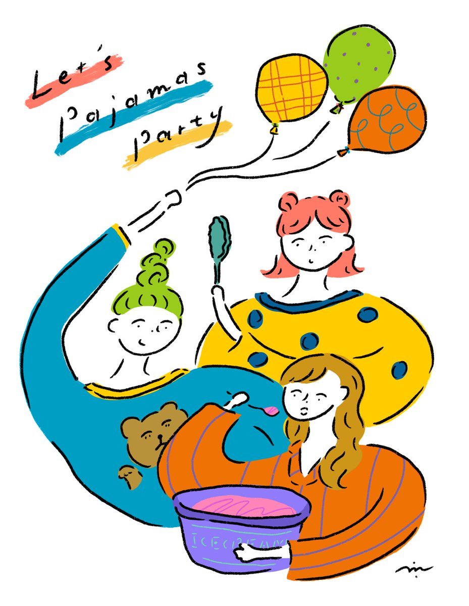 Slumber Party!👚🌟 #オリジナル #女の子 #創作 #イラスト #AdobeIllustrator #イラレ #ベジェ #アウトライン #少女 #パジャマパーティー pixiv.net/artworks/10466…