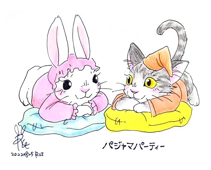 線画「パジャマパーティーに鉢合わせたルカ」 前作「ハンナ&由布子 パジャマパーティー」の続き 由布子さんち(ルカのホームステイ先)でパジャマパーティーなら鉢合わせは当然でしょうな… #線画 #イラスト #パジャマ #パジャマパーティー #鉢合わせ #illustration #pyjama #pyjamaparty