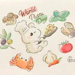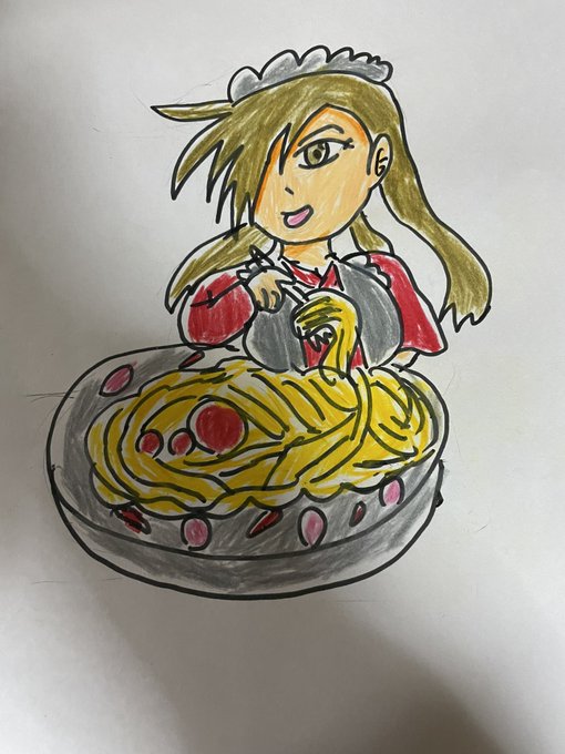 #一日一絵 #毎日絵一枚上げる #イラスト #色鉛筆画 #オリキャラ #イラスト好きな人と繋がりたい #絵描きさんと繋がりたい #パスタの日 クルリアパスリナ パスタ好きなメイドでありローマ国出身 和風パスタ料理などが得意 イタリアンパーティーで仲間と豪華パスタを作った🍝