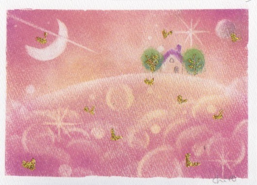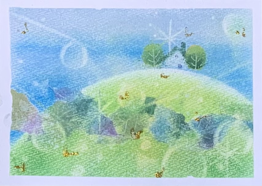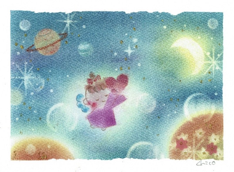 #みんなで楽しむTwitter展覧会 #お絵描き好きさんと繋がりたい #パステルアート paypayfleamarket.yahoo.co.jp/user/p4508932 【Happy home】 いつか どこか 星の上✨ パステルを削って、クルクル描きました♬