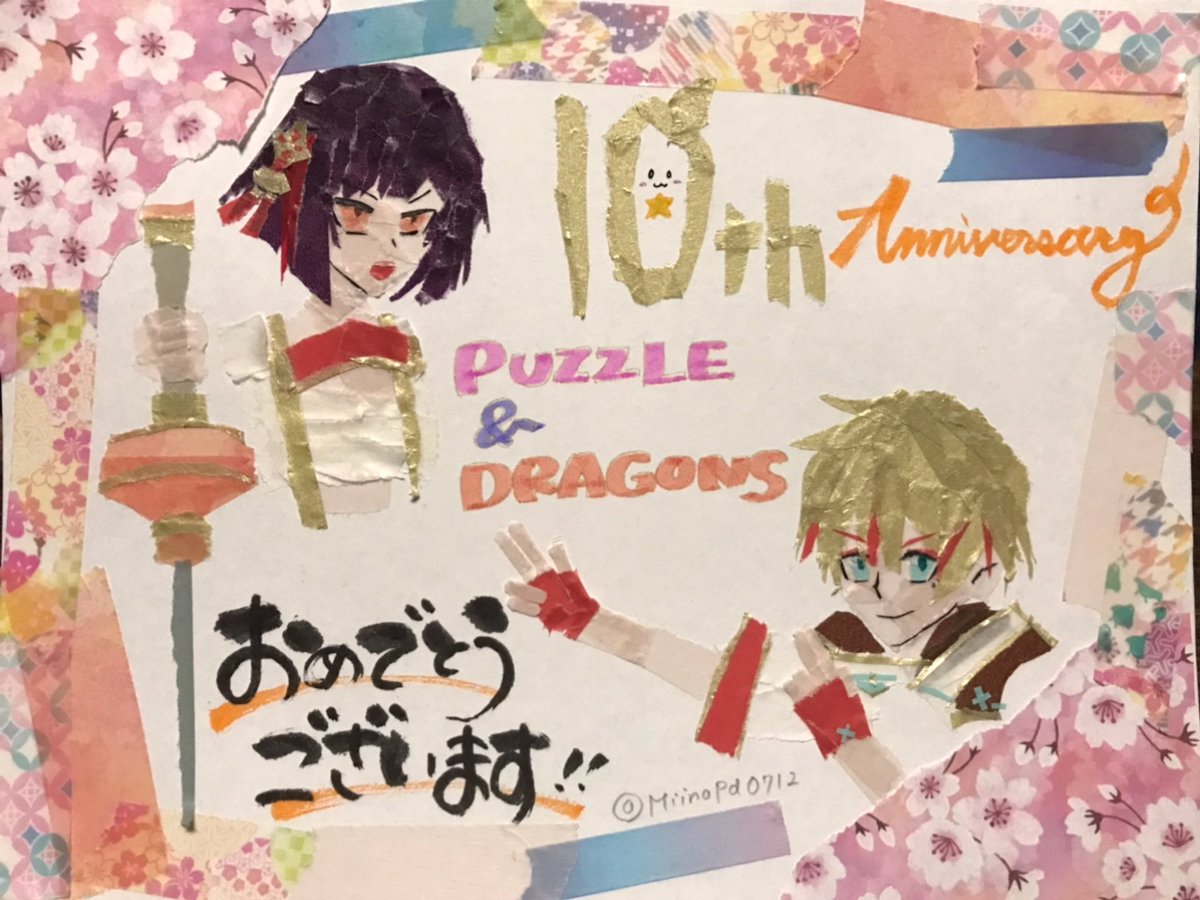絵は描けないのでマステでちぎり絵にしてみました。始めて間もない頃からお世話になってるセイナちゃん…リュウメイ君も一緒に。下手ですがお祝いさせてください🎉パズドラ10周年、本当におめでとうございます㊗️ #パズドラファンアート