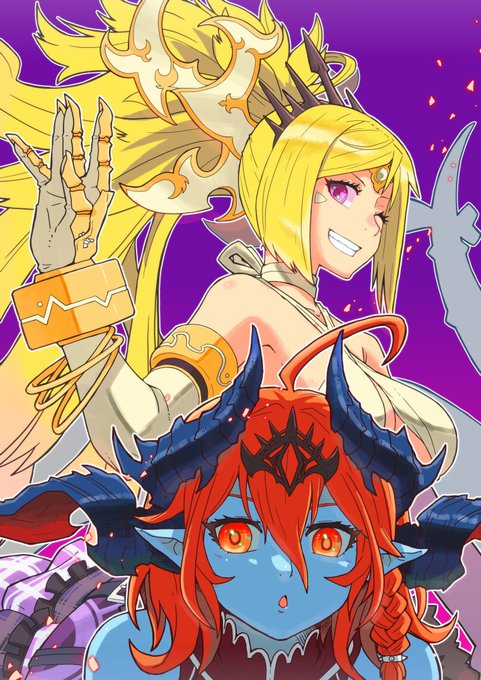 好きなキャラ二人の新形態が発表されたら描かざるをえません! ということで、遅ればせながらおめでとうございます! 最前線・・・とはさすがにいきませんが、いつもまったり楽しませていただいています!これからも楽しみます! #パズドラ11周年 #パズドラファンアート