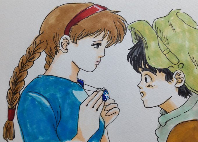 大大大好きな映画が放送される 留美子先生風🍳🍞(●:◎) #模写 #イラスト #イラスト好きな人と繋がりたい #ラピュタ #laputa #絵描き #絵柄が好みって人にフォローされたい #ghibli #ghibliredraw #ジブリ #天空の城ラピュタ #シータ #パズー #illustrators #drawing