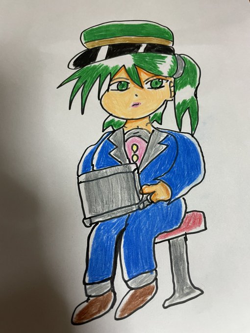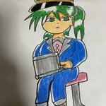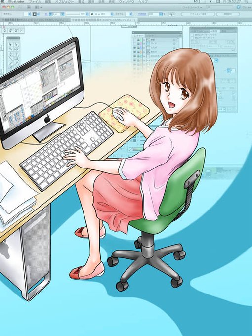 #一日一絵 #毎日絵一枚上げる #イラスト #色鉛筆画 #オリキャラ #イラスト好きな人と繋がりたい #絵描きさんと繋がりたい #パソコン記念日 補野阿美音 造形学園パソコン組の生徒 パソコンのエクセルなどが得意 ノーパソを持ち歩いているほどパソコン好き