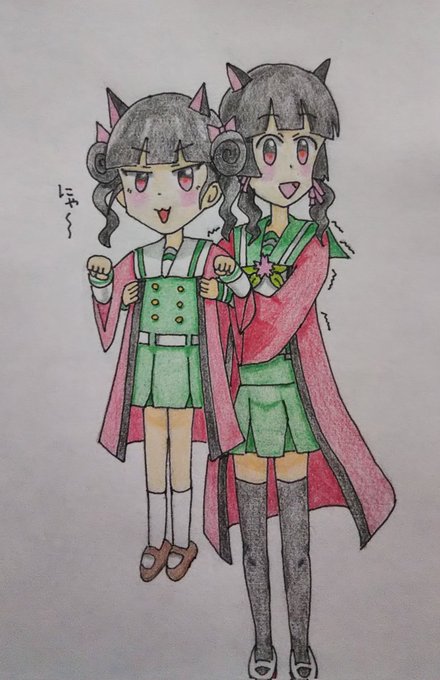 妹が可愛いので見せに来る #池西たん (池西にゃん)描きましたー!(*≧∇≦)ノ🐈️← 池西にゃん「可愛いでしょー!」 #パソ館たん 「にゃ~~🐈️」 #ビッカメ娘 ( #ナイセン ) #ビッカメ娘を描き隊 #ファンアート #色鉛筆 #絵描きさんと繋がりたい