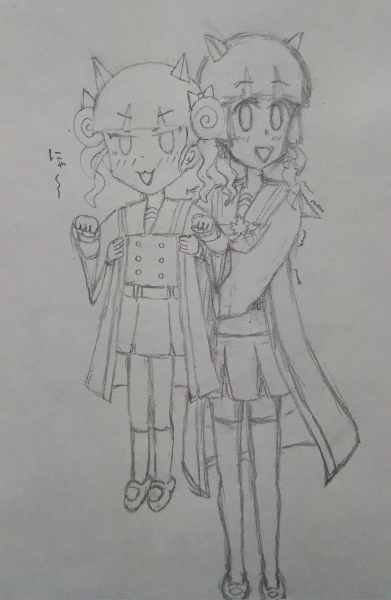 #6月29日はパソ館たん擬人化7周年 #6月29日はカメ館たん擬人化7周年 #パソ館たん 、 #カメ館たん おめでとうございます! 2人はいつでも一緒ですね!(*≧∇≦)ノ🎉🎉🎂✨🎁✨🐈️ イラスト、色塗りしてまた投稿しますね! #ビッカメ娘 ( #ナイセン ) #ラフ #ファンアート #絵描きさんと繫がりたい
