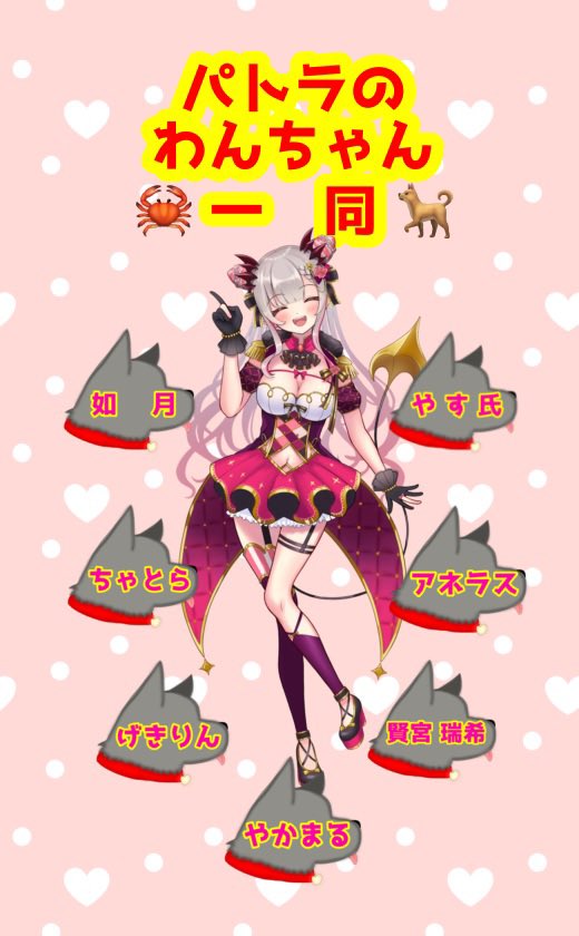 #パトワンプロジェクト (周防パトラSoloLIVE kawaii holic shibuya開催記念フラスタ企画1/2) パトラへ kawaii holic shibuya開催おめでとうっ!ここまでいっぱい頑張ってきたパトラにわんちゃん達からフラスタを贈るねっ!47人のわんちゃんから全7基! ↓リプに残り3基! #パトラのアトリエ #パトライブ4