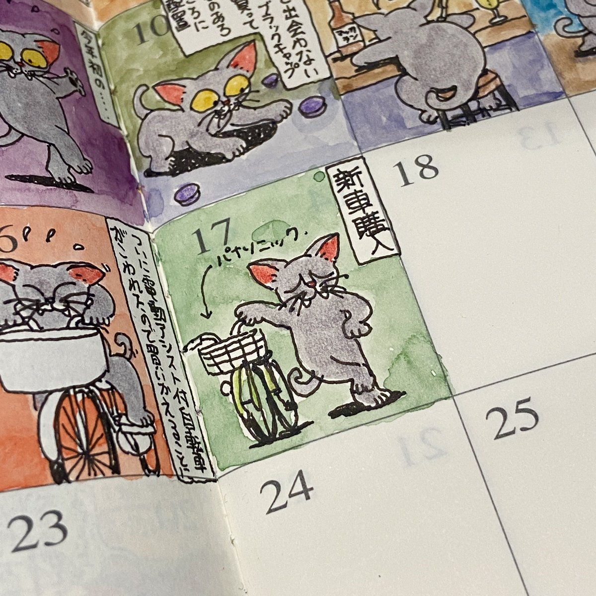 新車はパナソニック。 #自転車 #パナソニック #水彩画 #手帳 #トラベラーズノート #猫 #スケッチジャーナル #マンスリージャーナル #絵 #イラスト #絵描きさんと繫がりたい #イラスト好きな人と繋がりたい