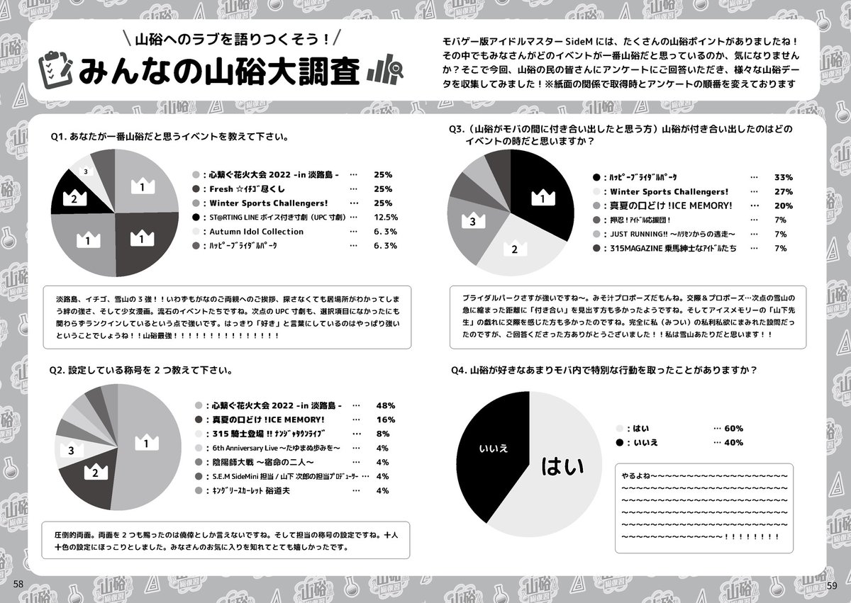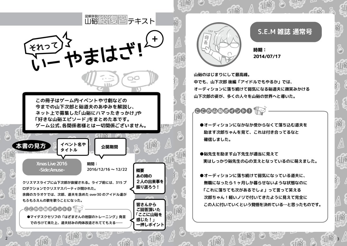 最後のコアタイム前に宣伝失礼します! 山硲を愛するみなさまからのプレゼンやアンケートを募り、モバエムイベント8年分の山硲ポイントをまとめたテキストを作成しました。 山硲の軌跡を70Pのボリュームで振り返るテキストです。 ぜひご覧ください! pixiv.net/artworks/10742… #パバステ5告知_0423