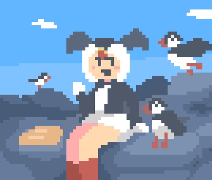 #パフィンの日 ひっさーさん主催の #パフィンちゃん合同2 に掲載したイラストです! 合同出た時期は秋だったので、ハロウィンパーティーを楽しむパフィンちゃん描いてました 今の時期、🎃ちゃん何してるんだろ...