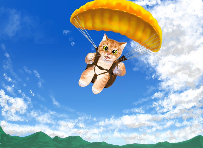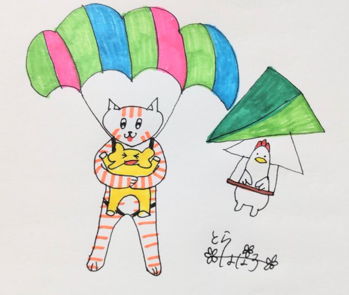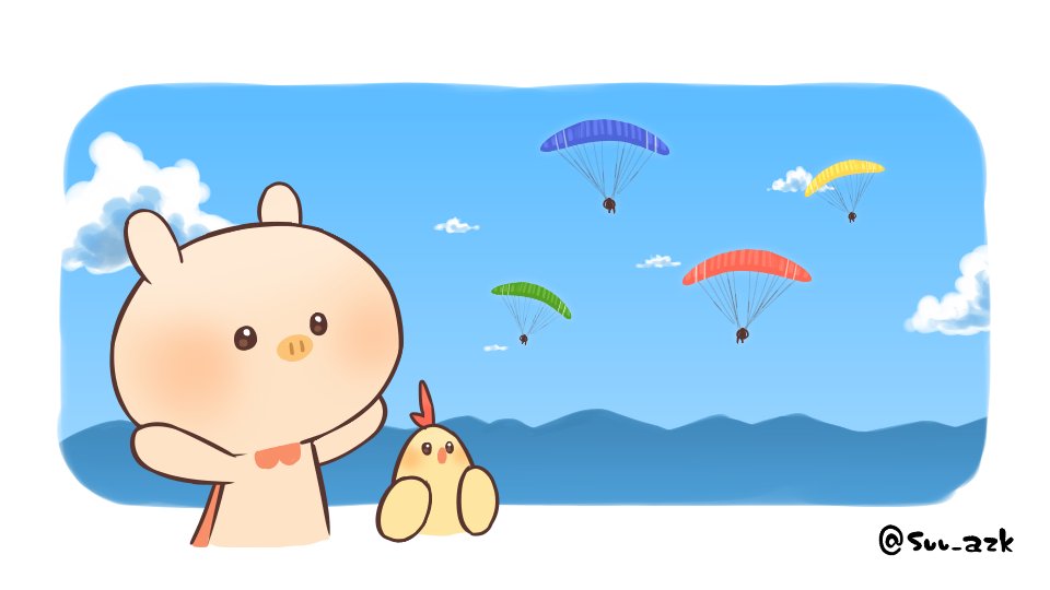 おはようございます!! #パラグライダー記念日 ことら、ぞうたん一緒に飛びます! ニワちゃん、自由に空を舞う〜😳 今日も素敵な日曜日を〜🤗 #絵描きさんと繫がりたい #イラスト好きな人と繋がりたい #みんなで楽しむTwitter展覧会 #イラスト