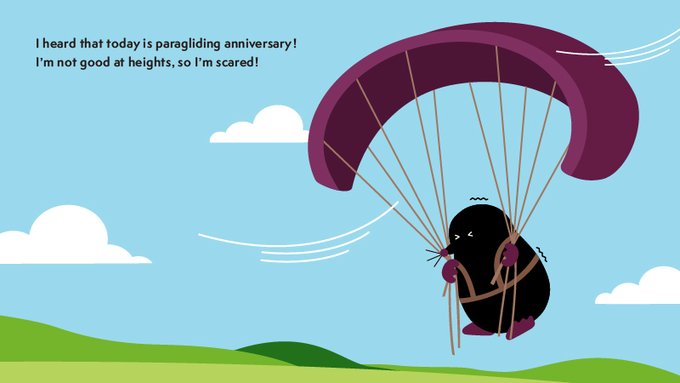 モグモグ〜!今日はパラグライダー記念日なんだって!ボクは高いところが苦手だから怖い〜!! #パラグライダー記念日 #モグハル #Moguharu #もぐら #キャラクター #character #イラスト好きな人と繋がりたい #イラスト #illustration #デザイン