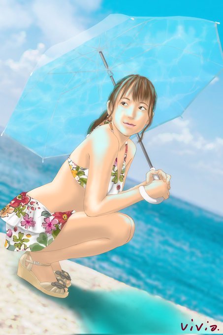 コスプレイヤーの鯱津つるさん描いてみた_¢(・ω・`) #鯱津つる #コスプレイヤー #水着女子 #パラソル #トレース #アレンジ #イラスト #絵描きさんと繫がりたい #イラスト好きさんと繋がりたい #絵柄が好みって人がいればいいなぁ