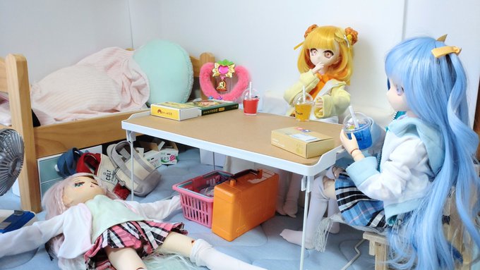 いろは「ではでは、おつかれさまでした! かんぱ〜い!」 このめ「うむ…お疲れ様…」 #うちのこかわいい #パラボ40 #MDDはいいぞ #野苺舎 #Decoration_Box #insomnia_wig