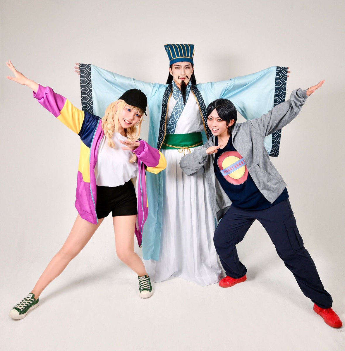 【パリピ孔明】※コスプレ ーーー 『BBラウンジ防衛隊!』 ーーー カメラマン:キニョさん 月見英子:今井ゆきさん kabe太人:なぎつんさん 孔明:にゃん相学 孔明が可愛くなってしまった☺️ (自分で言うSTYLE) #パリピ孔明コスプレ
