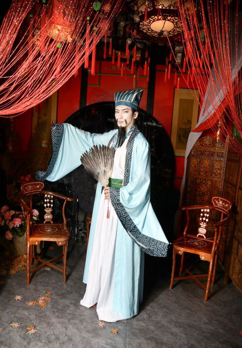 【パリピ孔明】※コスプレ⚠️ アニメ6話 ーーー 『我々と共に音楽にて。 天下泰平を実現致しましょう』 ーーー カメラマン:キニョさん 孔明:にゃん相学 KABE太人口説くとこ好きー! いずれロボットレストランでリベンジしたいw 兵HOーー♪ #パリピ孔明コスプレ