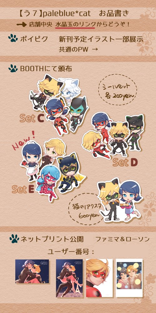 #パリ月0212サークル情報 当日のお品書きです🐞🐾 BOOTHはイベント開始時間より利用可能です。 ネットプリントの登録期間は約3週間ほど設けておりますので、ご都合の良い時に印刷して頂けると嬉しいです!