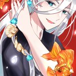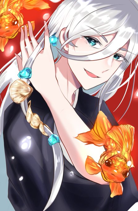 #パルミー超自撮りイラコン 夏!海!貝殻!金魚!和服男子! 好きなものを詰め込んだイラコン作品 『超自撮り☆オレたちを美少女・美少年化!』イラストコンテストの素材写真を使用したイラストです。