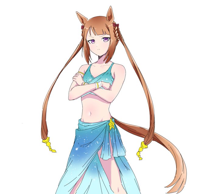 #ウマ娘好きと繋がりたい #描いてみた 前のタキオンに続き、カフェも水着で描いてみた パレオっぽいの巻いて露出控えめに サポカ発表前に描き始めたからデザイン違うけど、あっちも好き 塗り忘れ見つけたので再掲