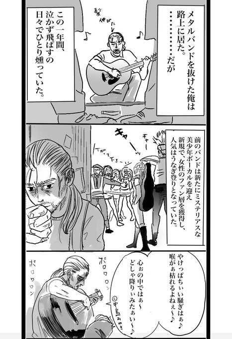 #VINLAND_FANART #VINLAND_SAGA #パロディー漫画 #パロディー苦手な人は回れ右で笑 幸村誠先生ごめんなさい🙇♀️ キャラ崩壊しております。 でも作品への愛は込めました🤎💙 英訳はタイムアップで断念・・・。 8頁有ります。 メタルバンドを抜けたトルフィン・・・。 その後。 その①