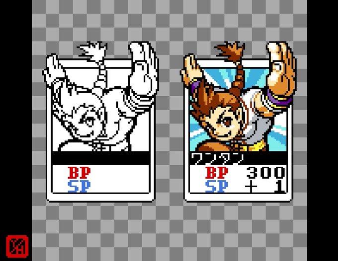 NPC『激突カードファイターズ』より、竜馬のカードを模写してみたゾ。 ついでに原作カラー版も作ってみた。 #カードファイターズ #パワーストーン #カプコン #ネオジオポケットカラー #ドットアーティスト #ドット絵 #レトロゲーム