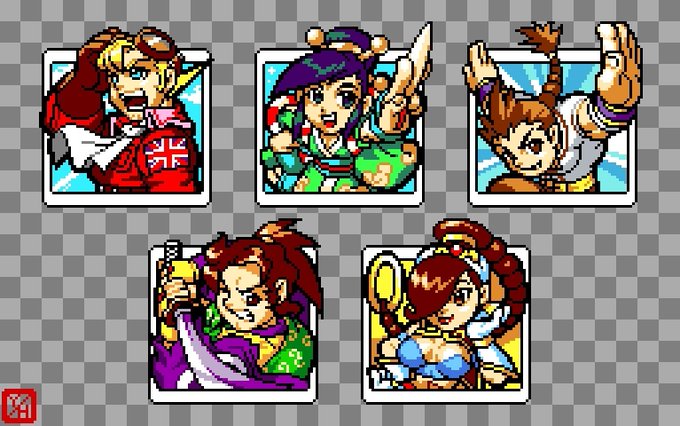 NPC『激突カードファイターズ』より、『パワーストーン』のキャラを並べてみたゾ。 #カードファイターズ #パワーストーン #カプコン #ネオジオポケットカラー #ドットアーティスト #ドット絵 #レトロゲーム