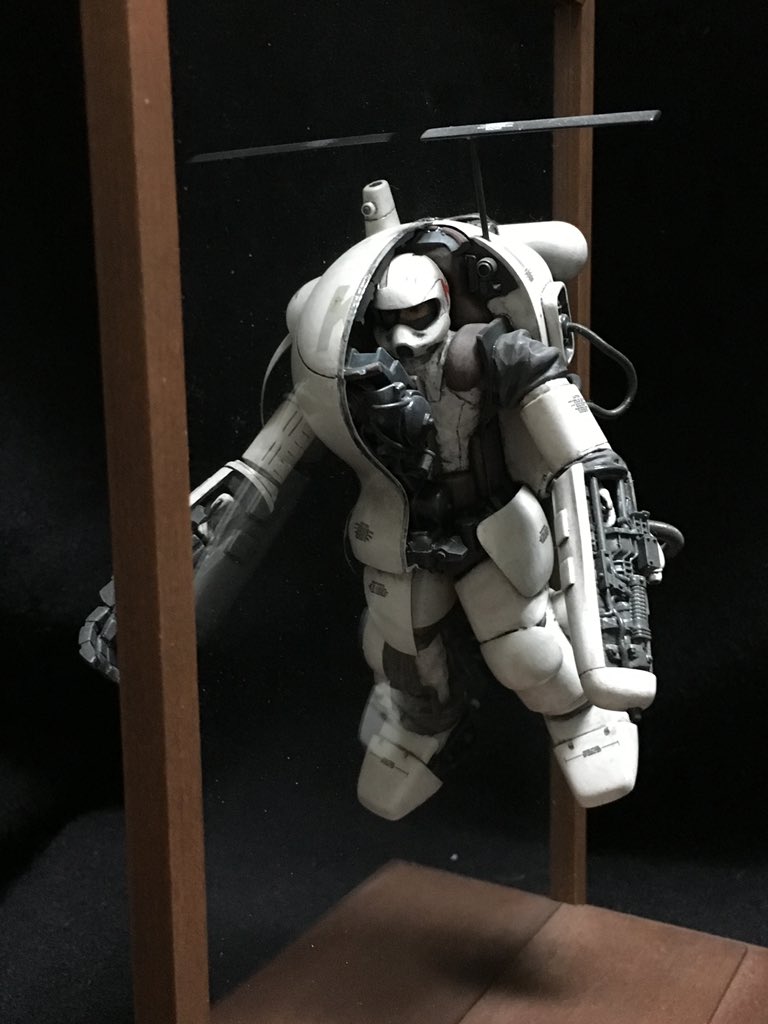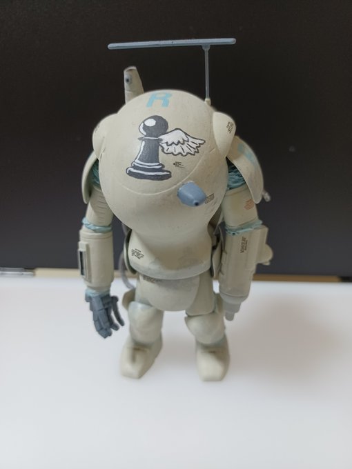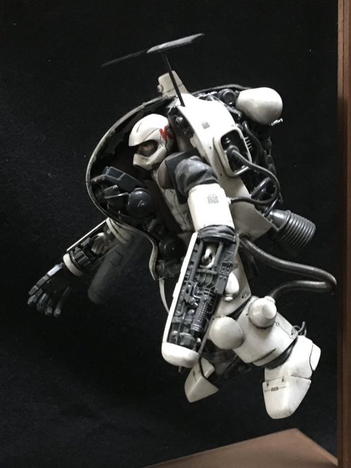#マシーネンクリーガー #パワードスーツ祭 #ガチャーネン 湿度が高い・・・(눈‸눈) 少し涼しい物どうぞ 冬季迷彩の35HEINRICHくん 中の人は、目塗れてません・・・ フィギュア塗装の道は長い(˘・_・˘)
