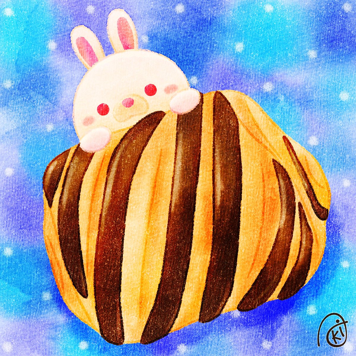 Pain au chocolat🍫 真狩村のブーランジェリージンさんのパンオショコラを描きました。 生地がもっちりしてすごく美味しかった記憶があります。 まわりになーんにもないところにぽつんとある素敵なパン屋さんでした🥐 また買いに行きたいな! #パンオショコラ #ブーランジェリージン #水彩