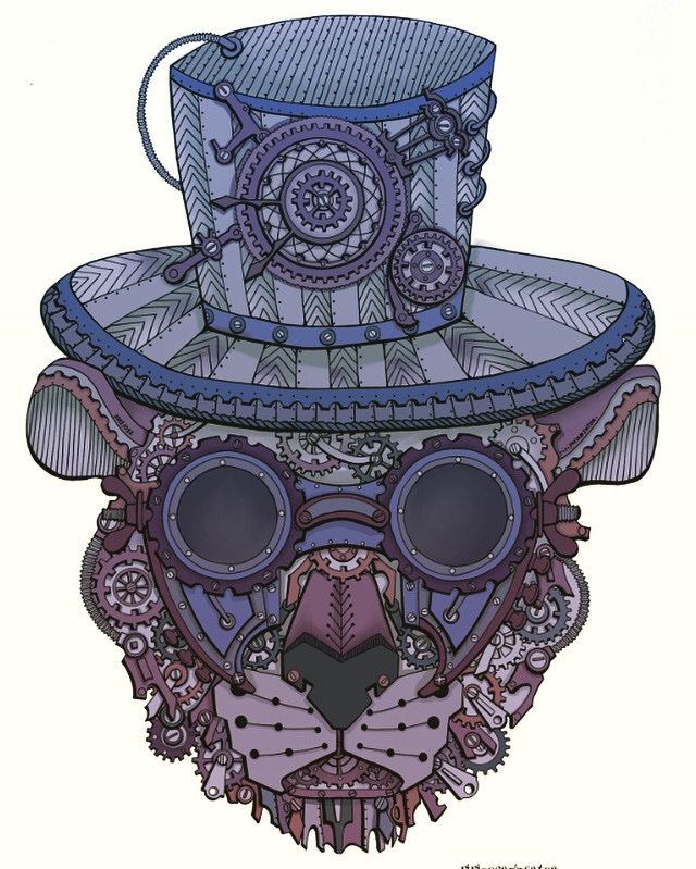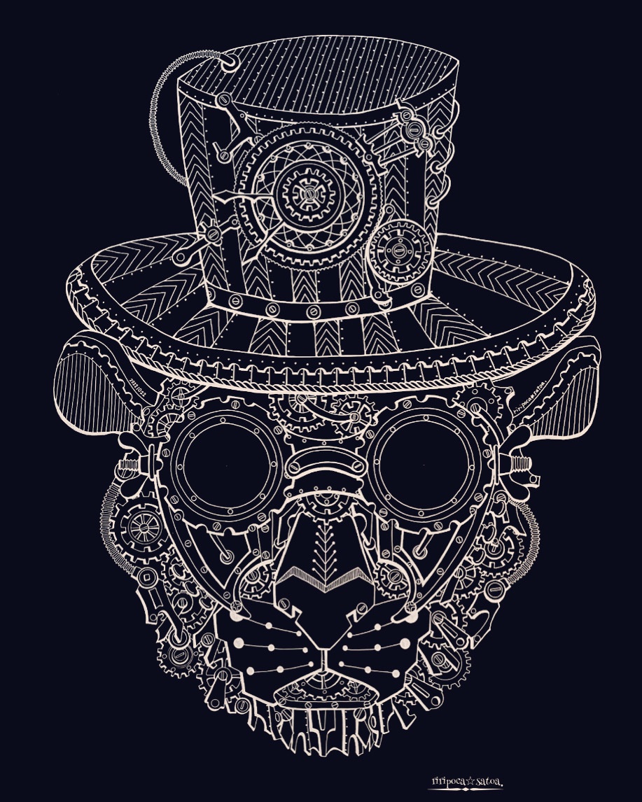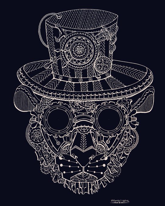 おはようございます✨✨ 今日はゲットするものがあるので早期から並びます💪 本日もよろしくお願いします♪ ⚙Panther⚙cover #スチームパンクイラスト #歯車イラスト #ペン画 #パンサー #絵柄が好みって人にフォローされたい