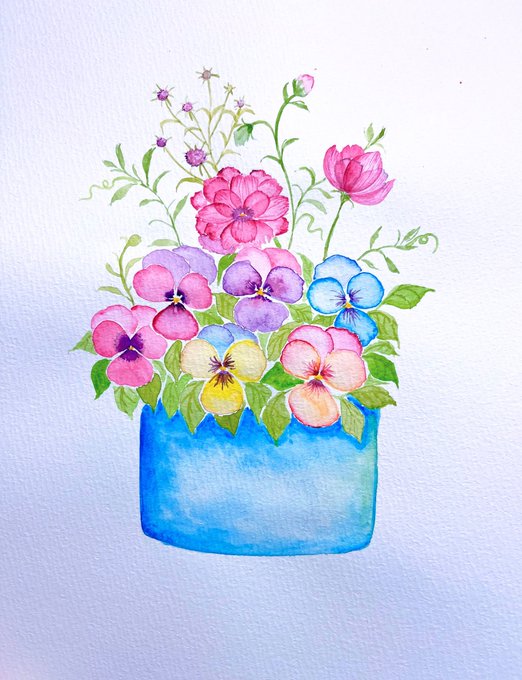 ベランダのパンジー。ブルーが綺麗です。#パンジー #イラストレーター #イラスト #水彩イラスト #水彩画 #花 #illustration #artwork #watercolor #watercolour #Flowers