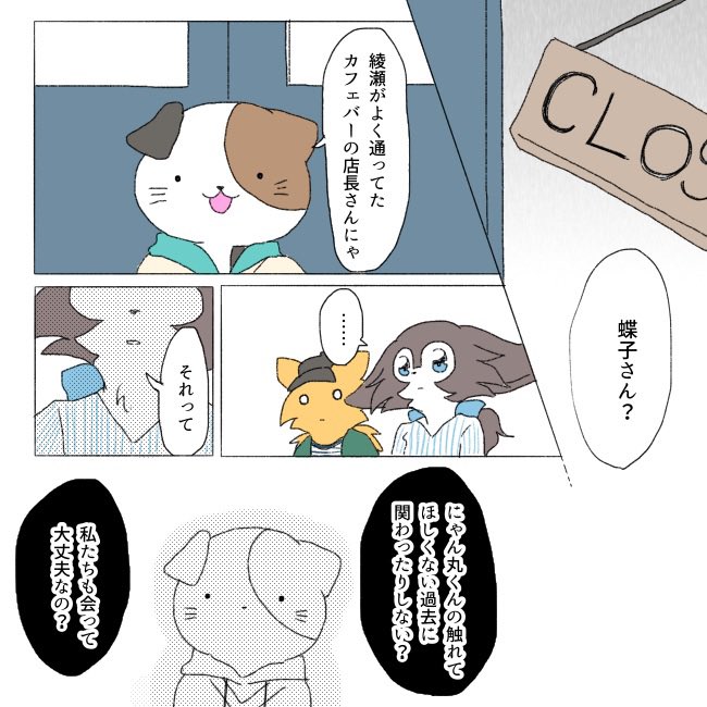 パン屋のにゃん丸 354 #パン屋のにゃん丸 #漫画が読めるハッシュタグ #創作漫画 #創作好きさんと繋がりたい #毎日投稿 #絵描きさんと繋がりたい これは第一話から気にしてたんですが、綾瀬と過ごしてるにゃん丸がいつものにゃん丸と違う様に書き分けられてるかなーって意識してます。