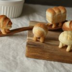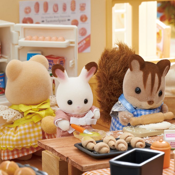 「これ、ぼくのかたち!」 「かわいいね!」 赤ちゃんたちは自分の形の #パン をもらってとっても嬉しそう♪ 「いいにおい…たべちゃお!」 「ジェイソンもう食べちゃうの!?」 クマのジェイソンはパンのいい匂いに、我慢できなくなっちゃったみたいですね🍞 #シルバニアファミリー #シルバニア