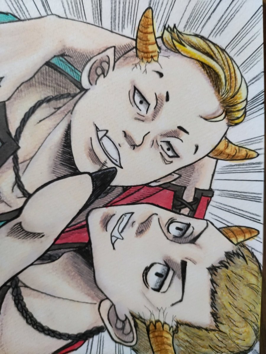 パーちんとぺーやんの色塗り出来ましたぁ☺️🤟 やっぱり服着せてあげました🤭💕 節分までの東リべ鬼シリーズ👹 『野望を語るパーちん鬼とペーやん鬼』 #東京リベンジャーズ #東京卍リベンジャーズ #東リベ #パーちん #ペーやん #イラスト好きと繋がりたい #アナログ