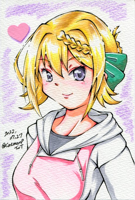 #パース進水日 #艦これ版深夜の真剣お絵描き60分一本勝負 #艦これ版真剣お絵描き60分一本勝負_20220727 バレンタインのエプロンモードが可愛いくて好き あと、三つ編み描くの難しい…もっと立体にしたいねぇ