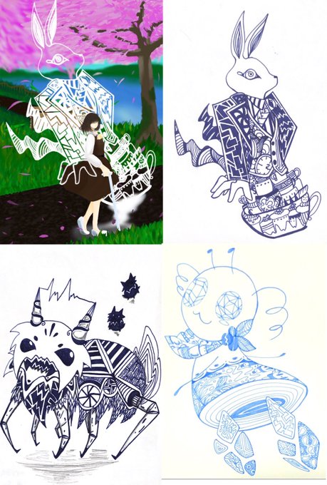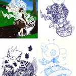#オレンジ使った絵を見せて #ヒイロノキマグレ #ゼンタングルインスパイアードアート #アナログ 過去絵祭 色鉛筆とボールペンで描きました いつかこの子達もリメイクしたいです 【鍵盤の悪魔】と【楽譜の悪魔】
