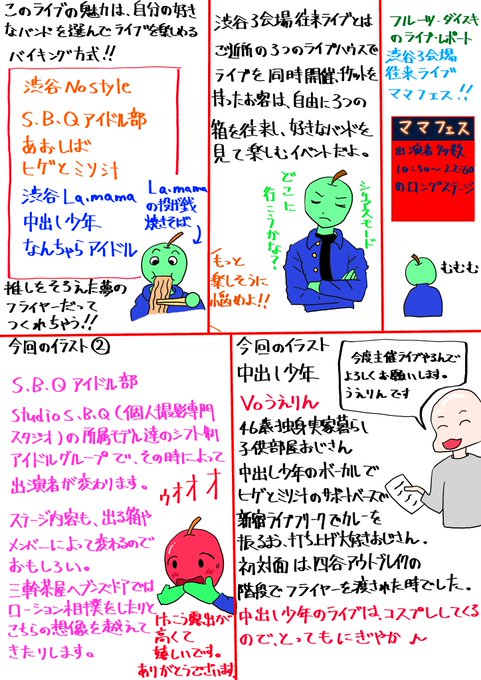 今まで描いたライブレポートがまとめてあるので よかったらこちらもお願いします twitter.com/penwomanabu/st… 過去絵 #イラスト #漫画がよめるハッシュタグ #レポート #ヒゲと味噌汁 #危険物品 #美里ウィンチェスター