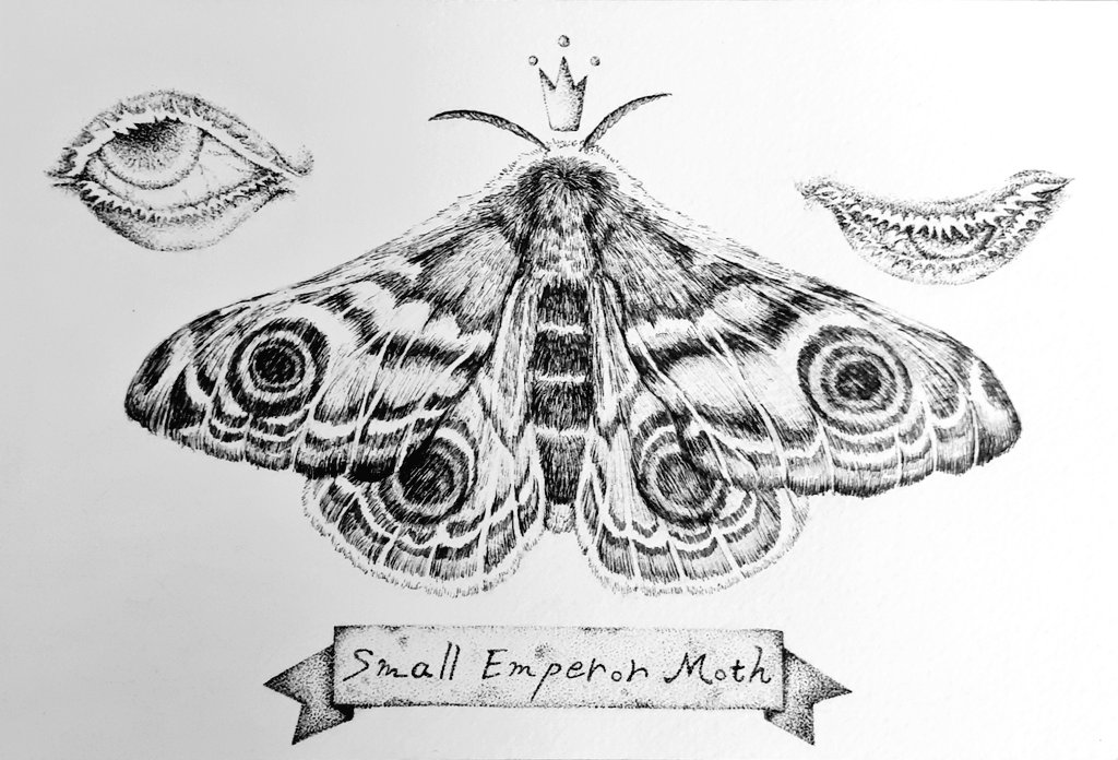 「Small Emperor Moth」 最近忙しく、中々更新できずすみませんでした💦生きてます! #ペン画 #ペン画を流してペン画民を増やそう #イラスト #illustration #蛾 #ヒメクジャクヤママユ