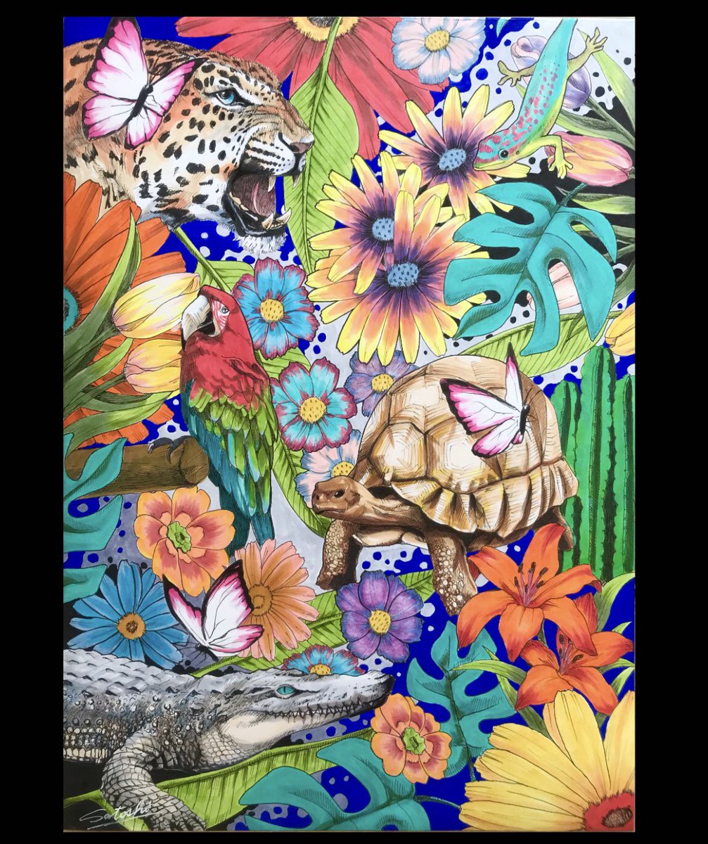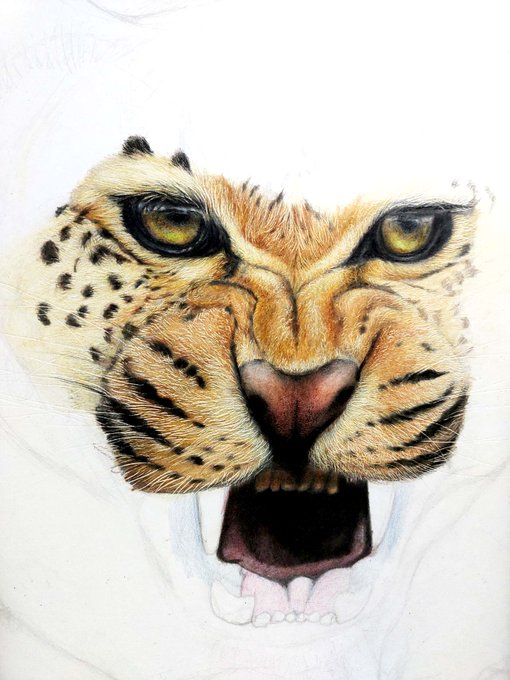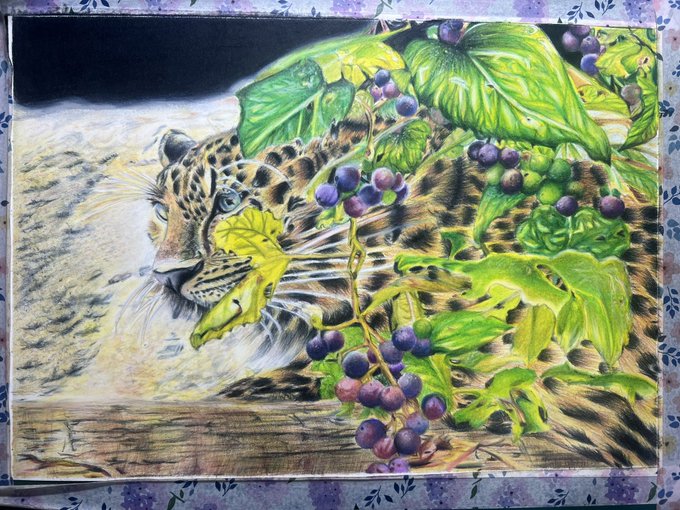 明日から参加のイベント名 (仮)を付けてましたが 本当の名前が わかりました🌟 #HappyWinterFesta でした よろしくお願いいたします👨🏻🦲 ◆12/17(土).18(日) #はっぴーういんたーふぇすた 参加 #久留米市 #久留米シティプラザ #六角堂広場 #色鉛筆アート #六ツ門 #動物画 #豹 #ヒョウ #絵 #イラスト