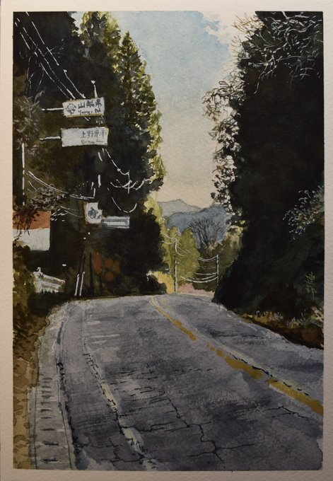 冬の甲武峠。東京西部の檜原村から神奈川県上野原市へ抜ける、交通量少ない峠。東京から山梨へ自転車で越えたときの眺め。中年にはすこしきつい。山梨側は勾配大きく荒れている。 Fabriano Artistico Extra White, SM. #水彩画 #透明水彩 #風景画 #Watercolor #landscapes #ロードバイク #ヒルクライム