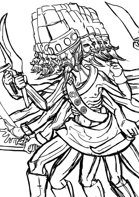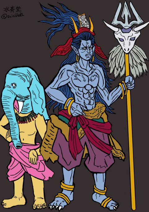 『シヴァ神とガネーシャ』 息子の首を刎ねて象の首を据えるDQNぶりが狂ってるのでそのイメージで描いてみた。 仏教ではシヴァ→大自在天、伊舎那天、摩醯修羅天 ガネーシャ→聖天と呼ばれる #天部 #インド神話 #ヒンドゥー教 #イラスト好きさんと繋がりたい #絵柄が好みって人がいればいいなぁ